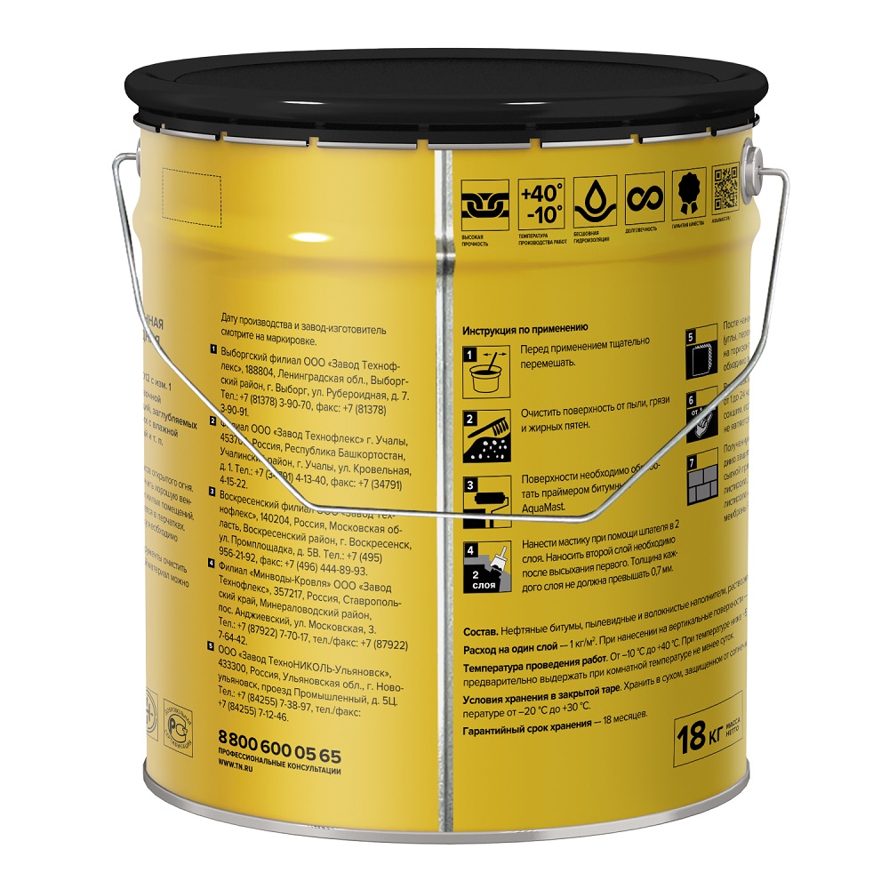 Описание товара: "Мастика Технониколь AquaMast для фундамента, 18 кг"